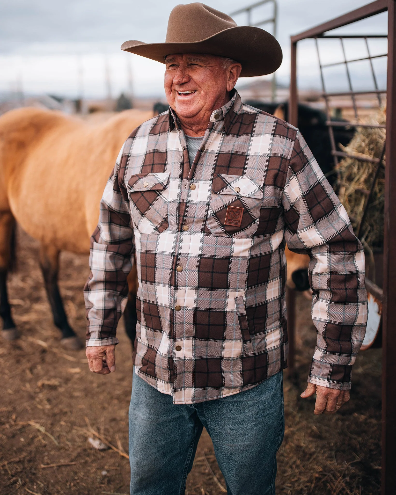 • Faux leather Dixxon brand tag on the left chest pocket