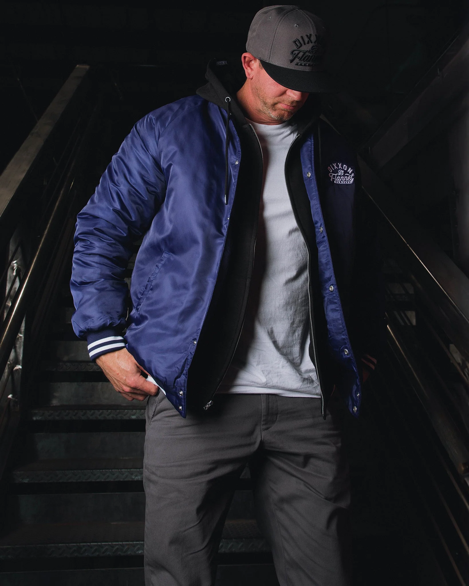 - Men’s blue varsity jacket