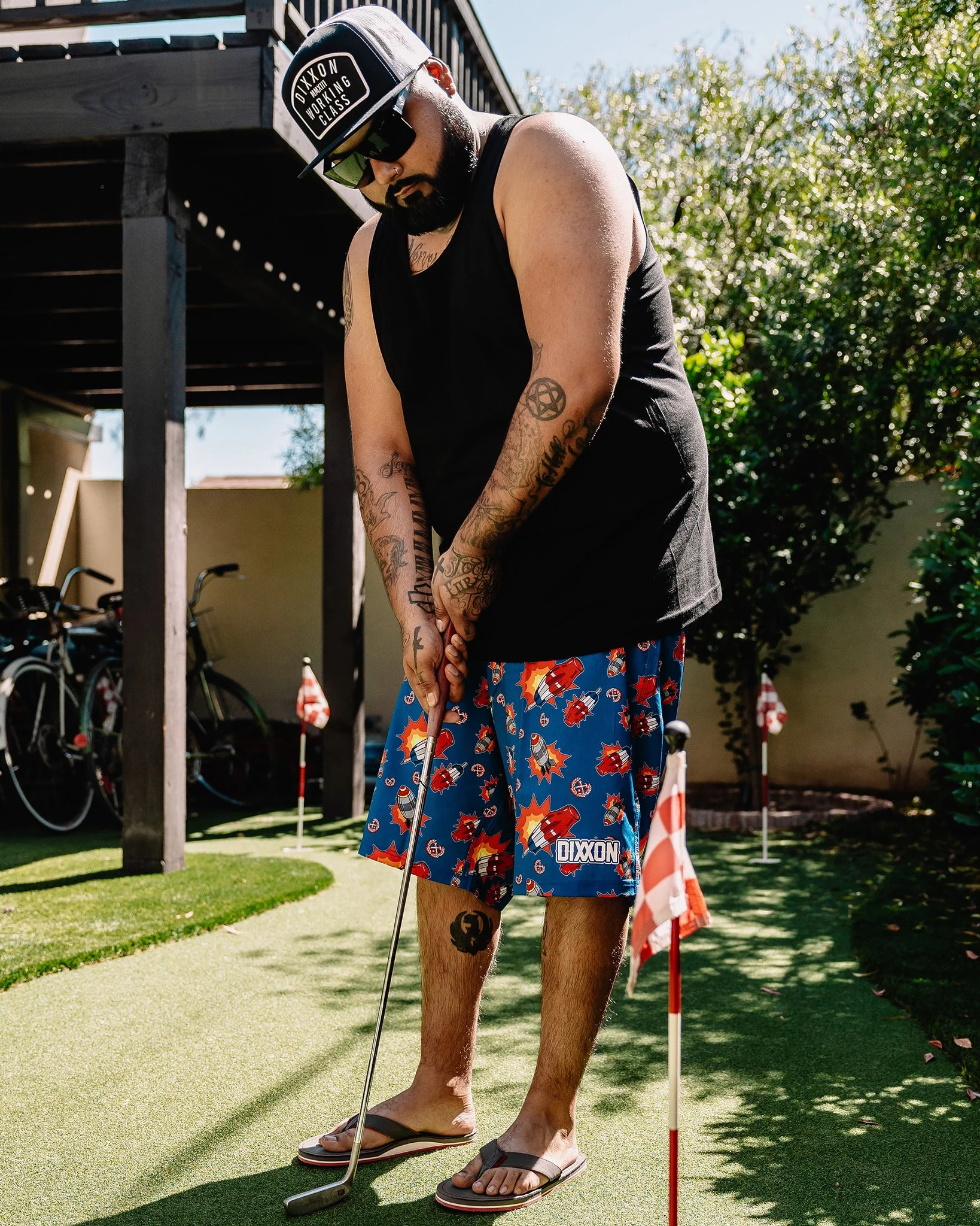 - Men’s blue boardshorts