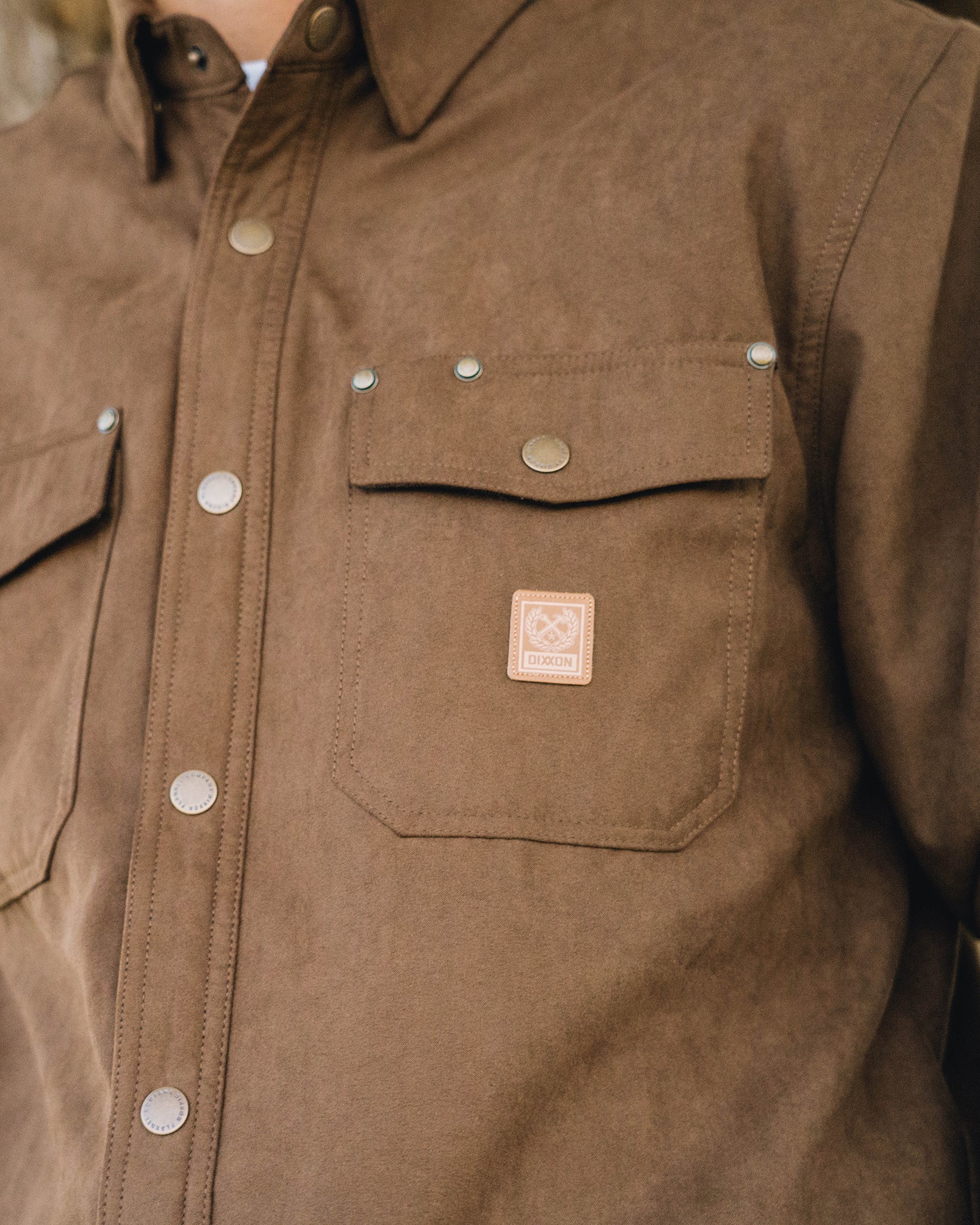 - Faux leather Dixxon brand tag on the left chest pocket