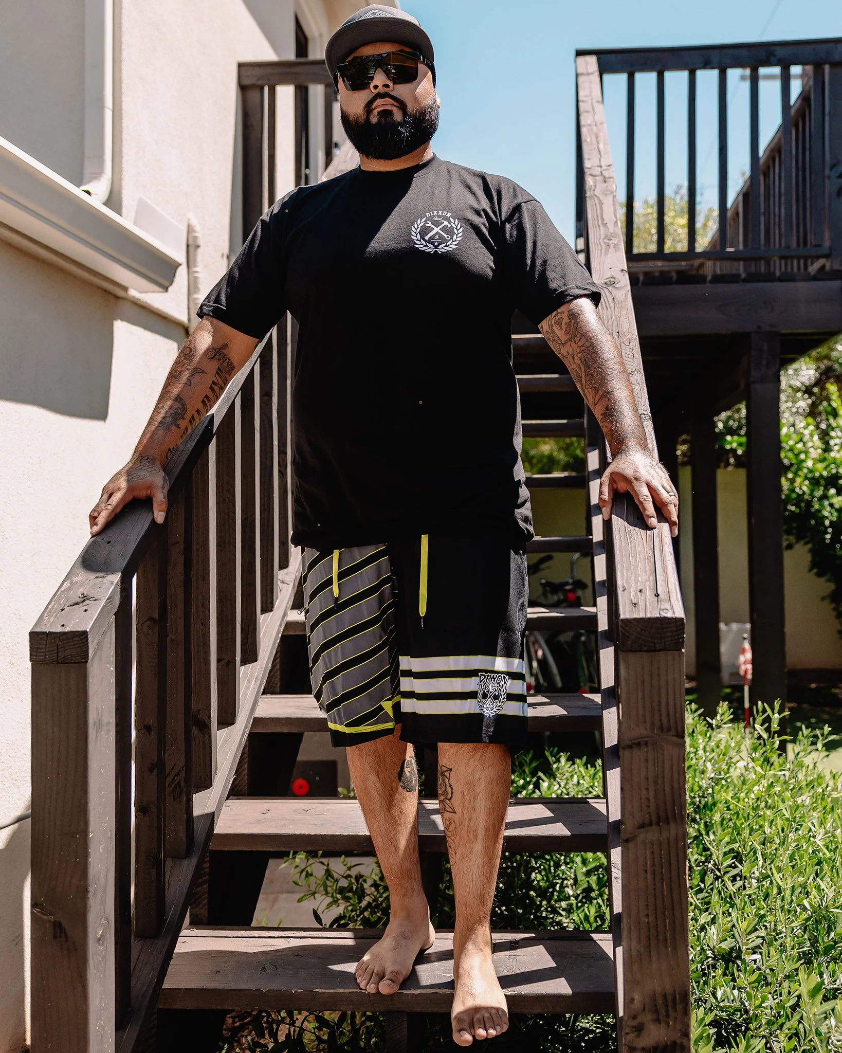 - Men’s black boardshorts