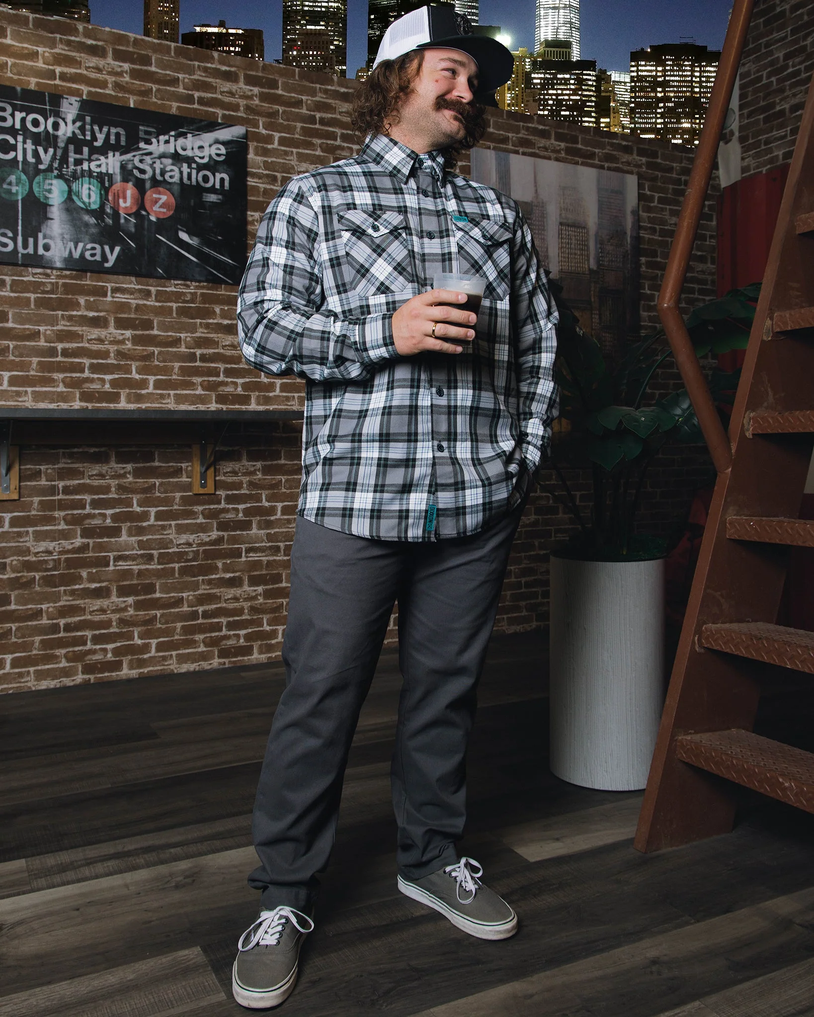 Wrapping up our celebration of a decade of Dixxon, the Manhattan 10YR Flannel features an allover white, black, gray, green, and blue plaid pattern that offers an eye-catching design, while our signature D-Tech™ blend provides the comfort of soft to the touch flannel. Constructed to be breathable for the performance you demand, yet durable for the rugged lifestyle you live.