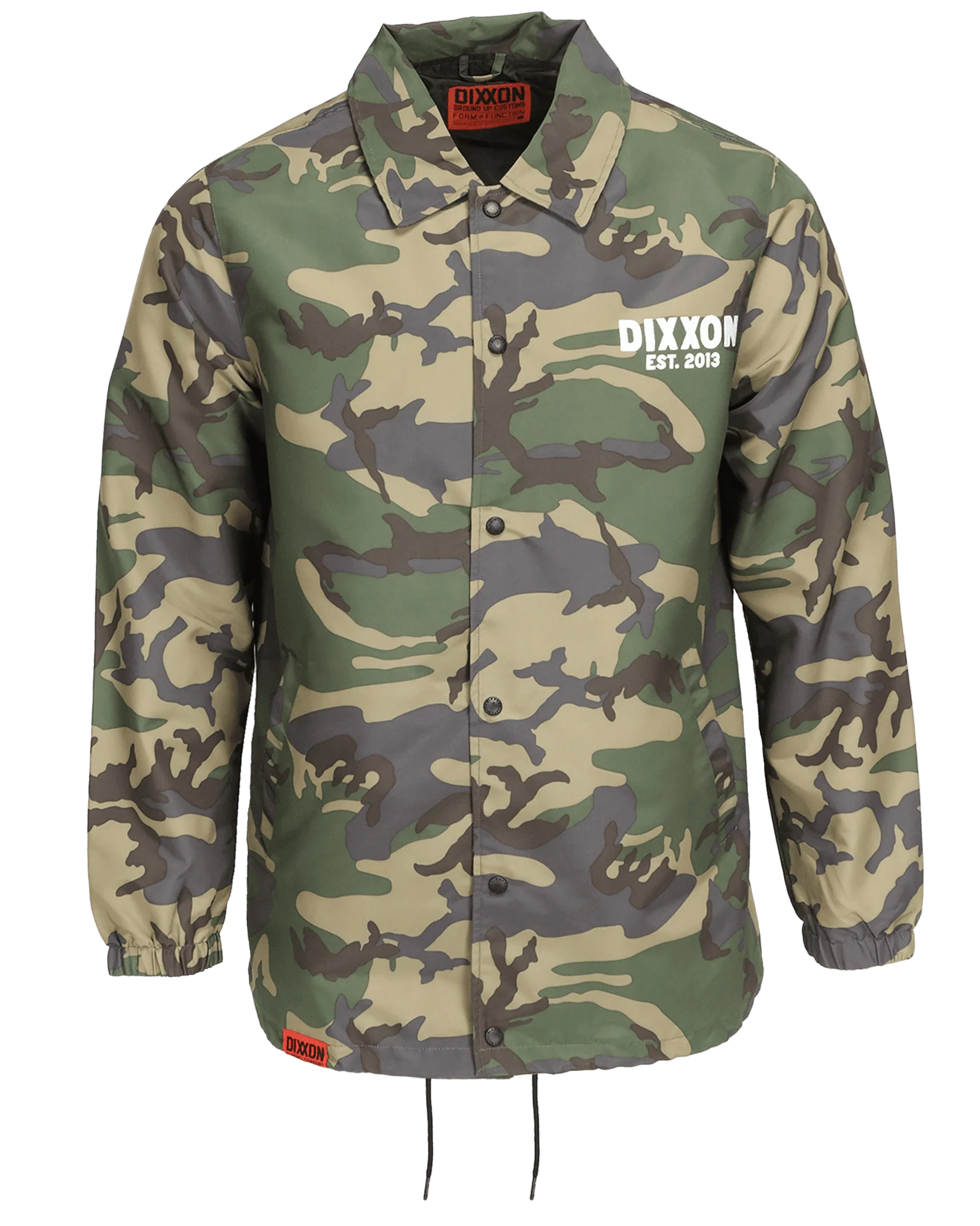 - Men’s camo, water-resistant coaches jacket