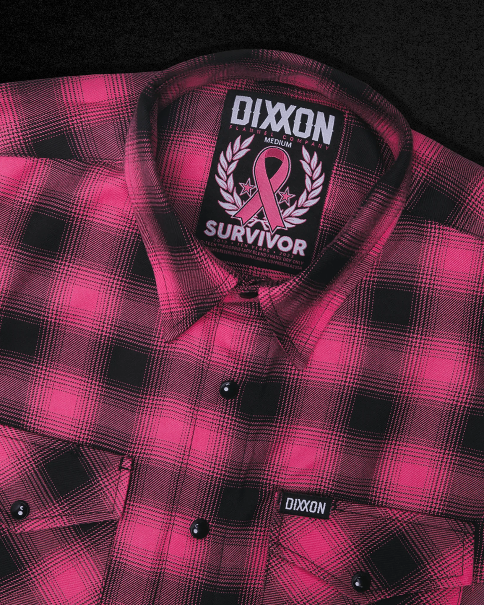 In honor of Breast Cancer Awareness Month, the Survivor 10YR Flannel features an allover pink and black plaid pattern that offers a clean and classic design, while our signature D-Tech™ blend provides the comfort of soft to the touch flannel. Constructed to be breathable for the performance you demand, yet durable for the rugged lifestyle you live.