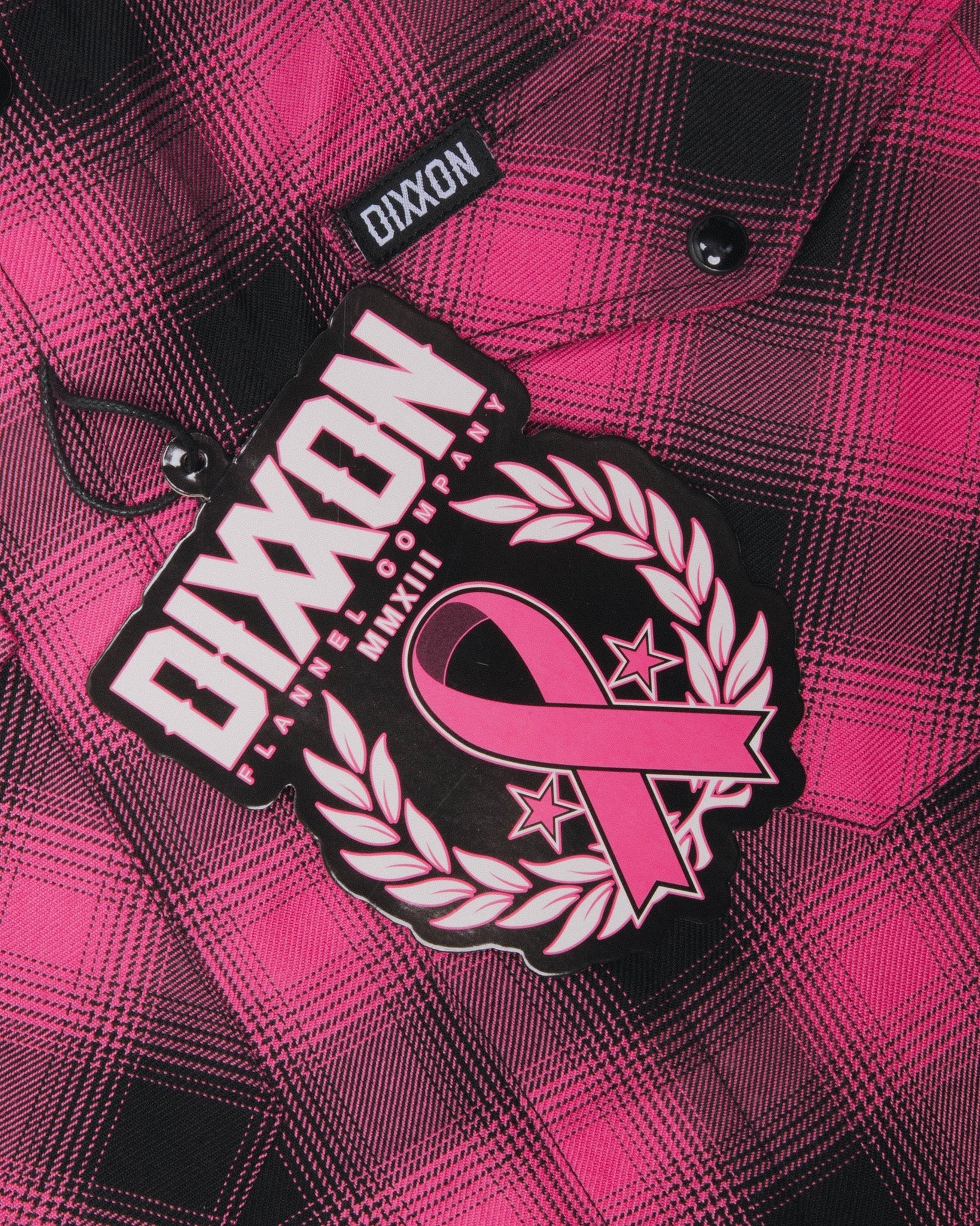 - Black and white Dixxon brand tag on the left chest pocket