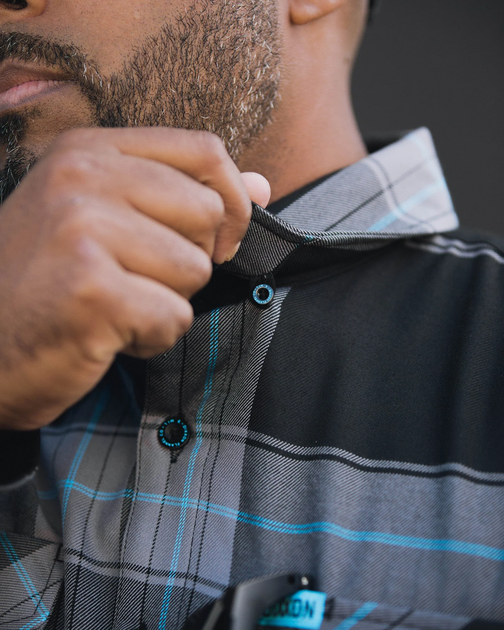 - Men’s gray, black, and blue plaid patterned flannel shirt