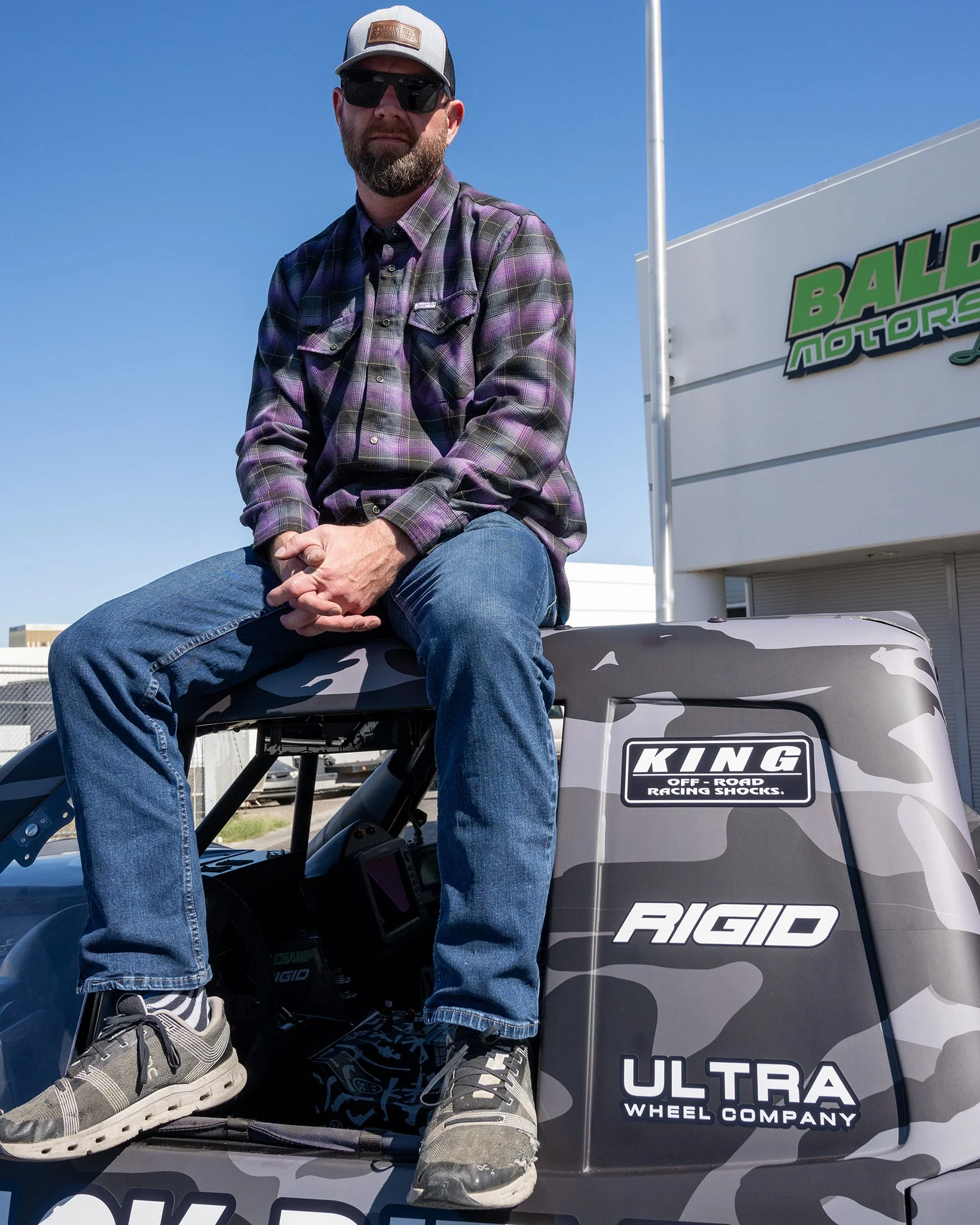 In collaboration with an absolute legend, the BJ Baldwin Flannel features an allover purple, black, gray, and green plaid pattern that offers an eye-catching design, while our signature D-Tech™ blend provides the comfort of soft to the touch flannel. Constructed to be breathable for the performance you demand, yet durable for the rugged lifestyle you live.
