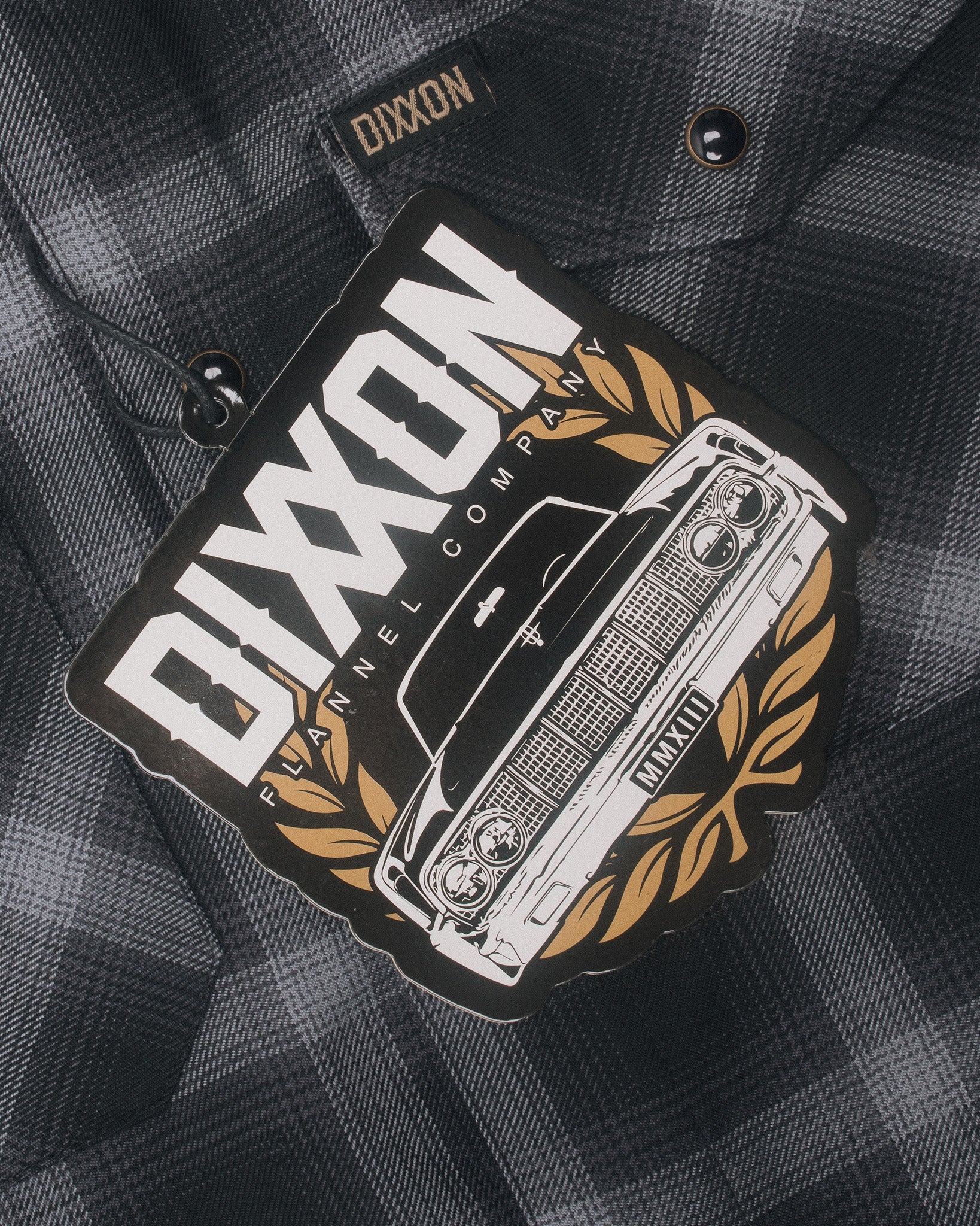• Black and gold Dixxon brand tag on the left chest pocket