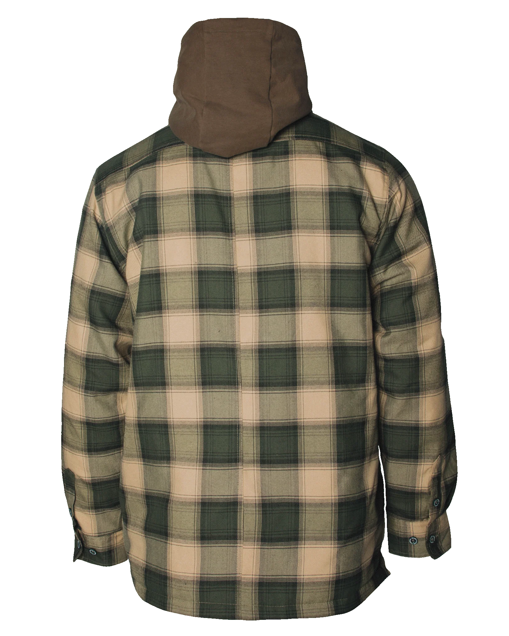 From hood to hem, the Squadron Hooded Flannel Jacket is a true blend of the unique features that help to set us apart. The classic, relaxed fit is teamed with a green, khaki, and black wrinkle free flannel exterior and a custom quilted liner that provides both breathability and durability. Two interior breast pockets and a hidden stash pocket behind the neck label are excellent for stowing your essentials, while the traditional 4-pocket configuration offers plenty of extra storage. Finished with a combination dual zipper and heavy duty brass snap front closure, this multi-faceted design echoes the ever-evolving nature you've come to know from Dixxon.