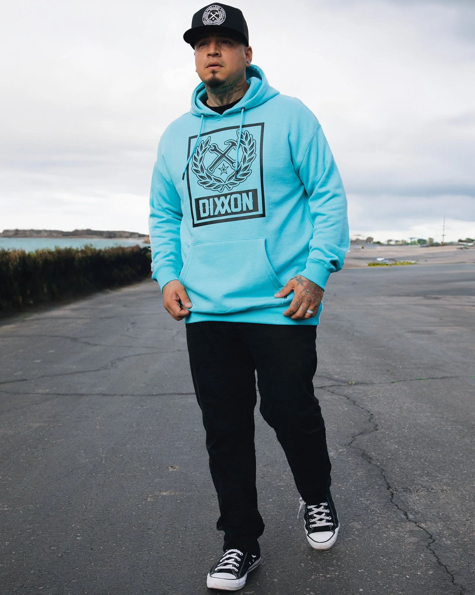 • Men’s Tiffany blue, fleece lined pullover hoodie